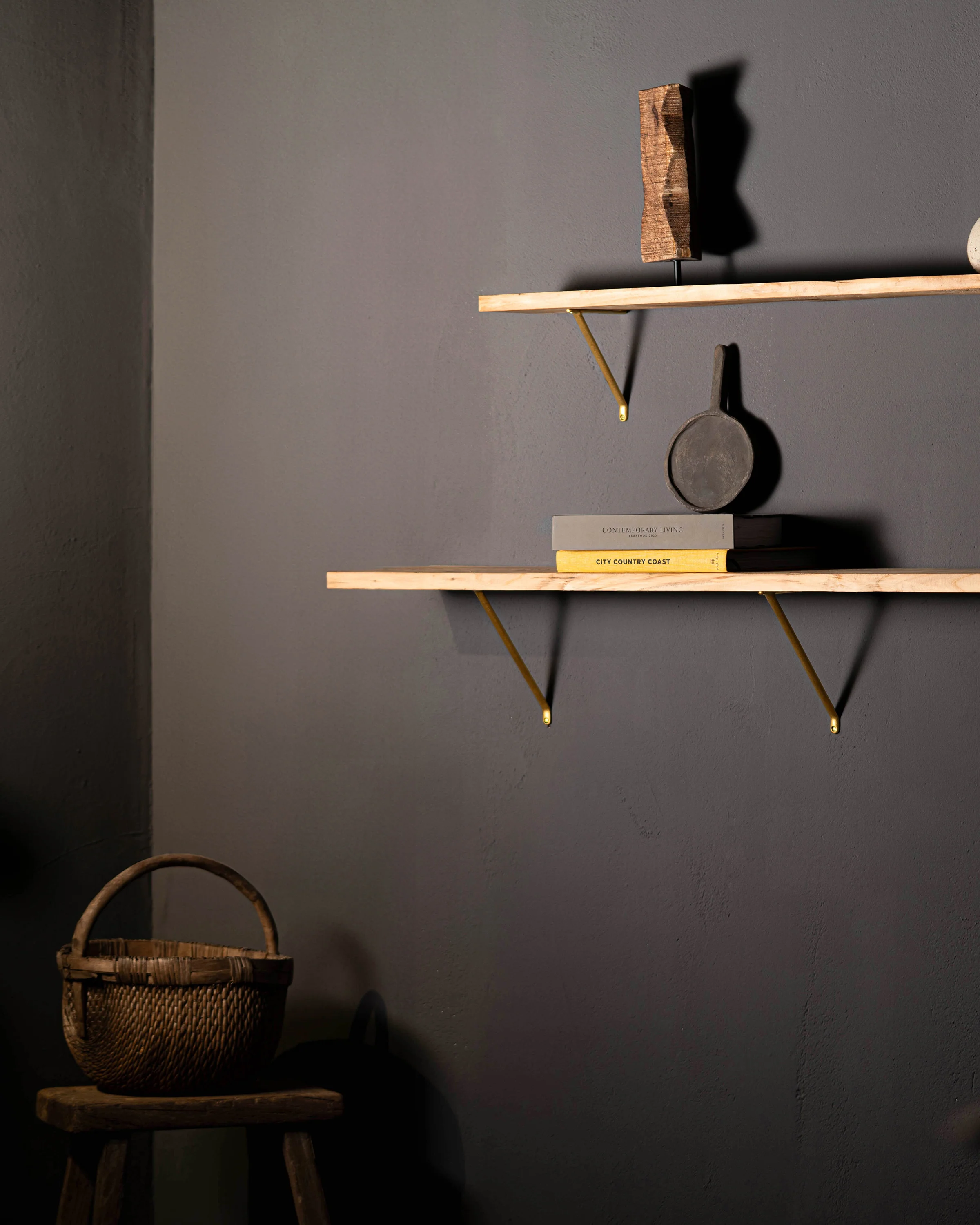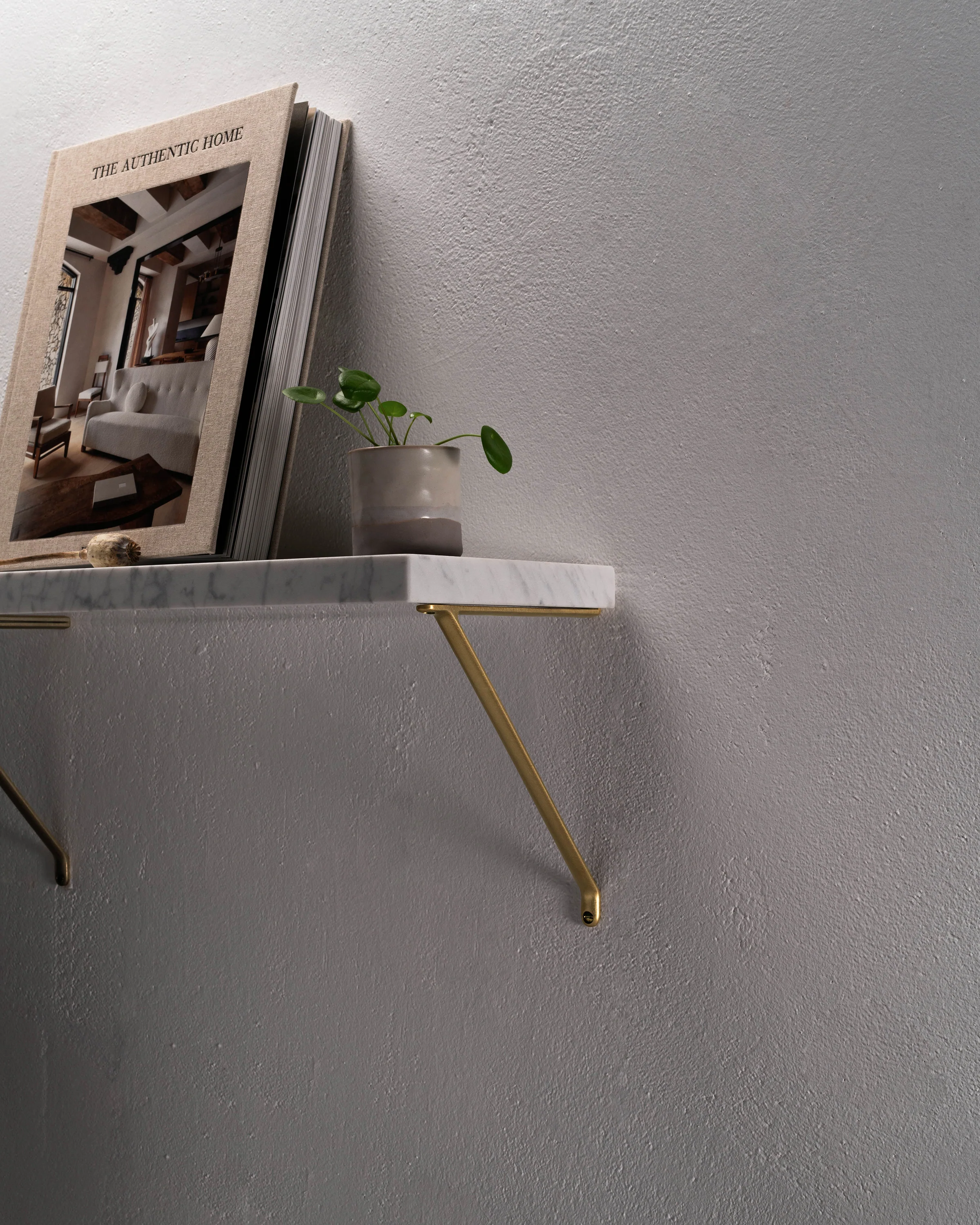 Our Brixton shelf bracket is cast from a single piece of sturdy solid brass. It’ll sit flush against your wall and comfortably hold 40kg.