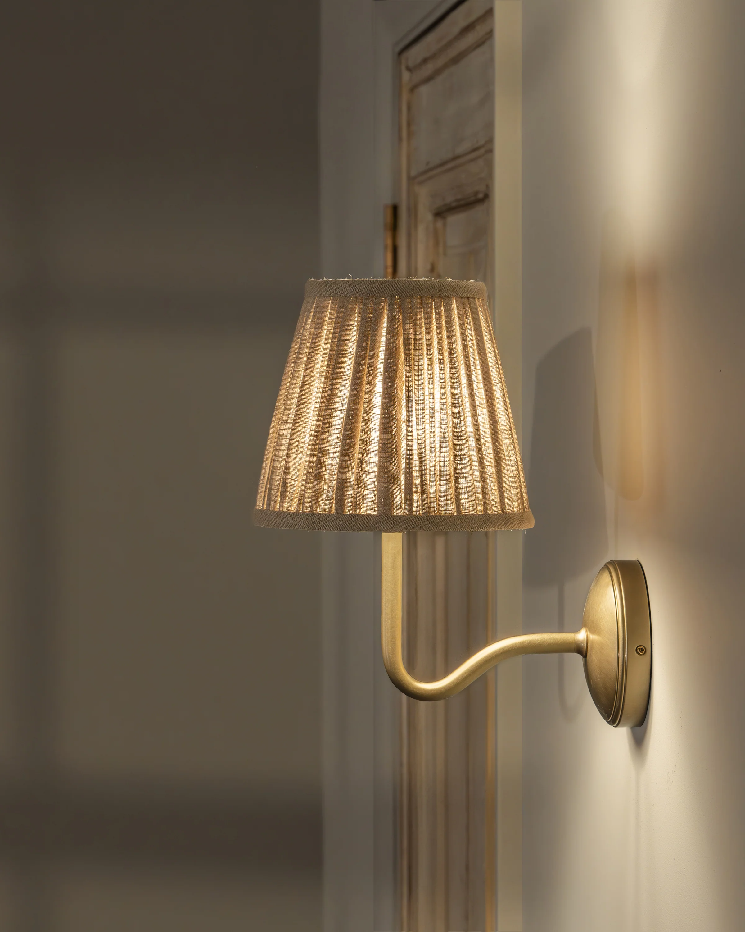 Malvern Medium Wall Light Natural Beige - Antique Brass