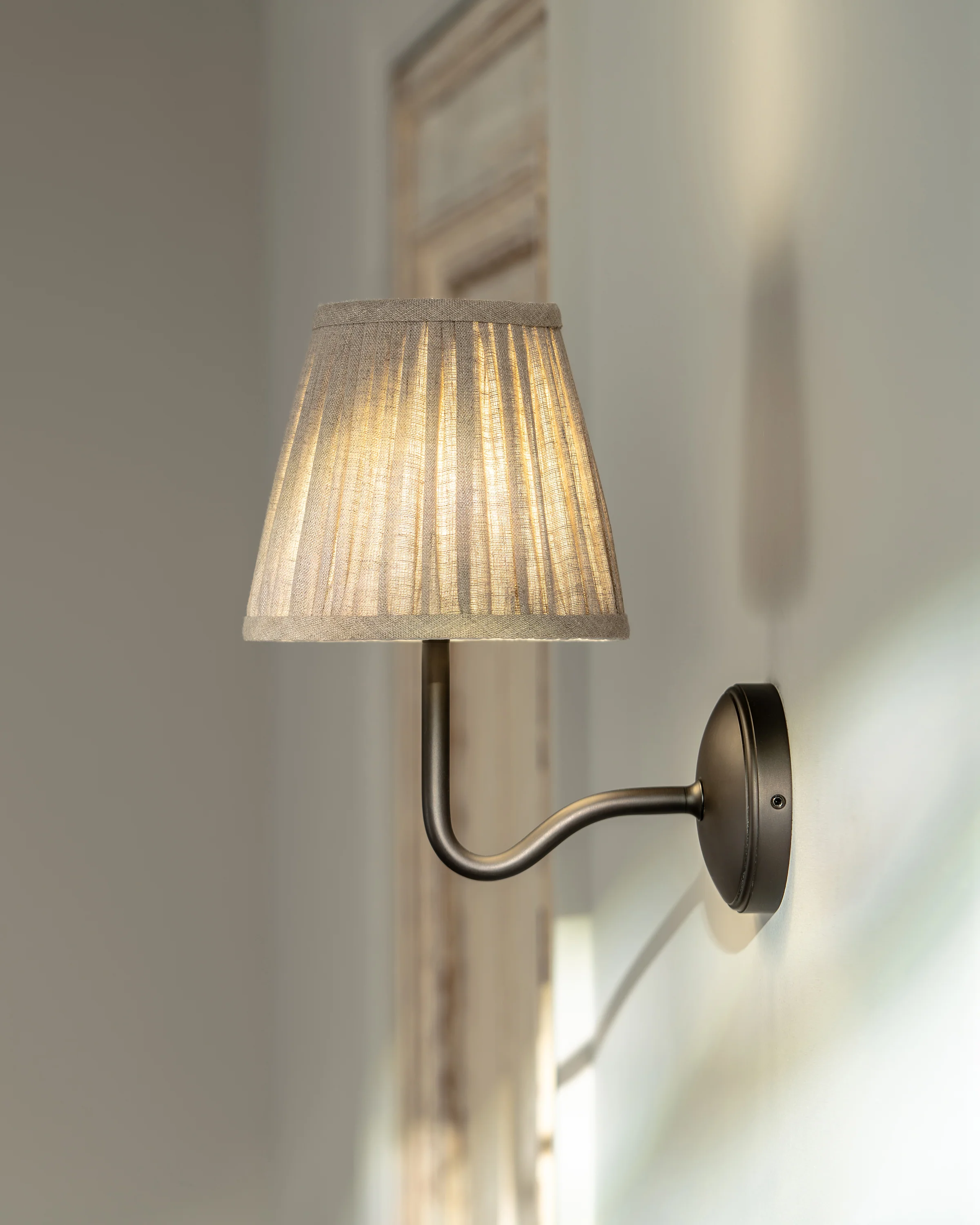 Our medium-sized take on the traditional swan neck wall light is scaled up, but still perfectly proportioned. It’ll have a greater presence in bigger or high-ceilinged rooms.