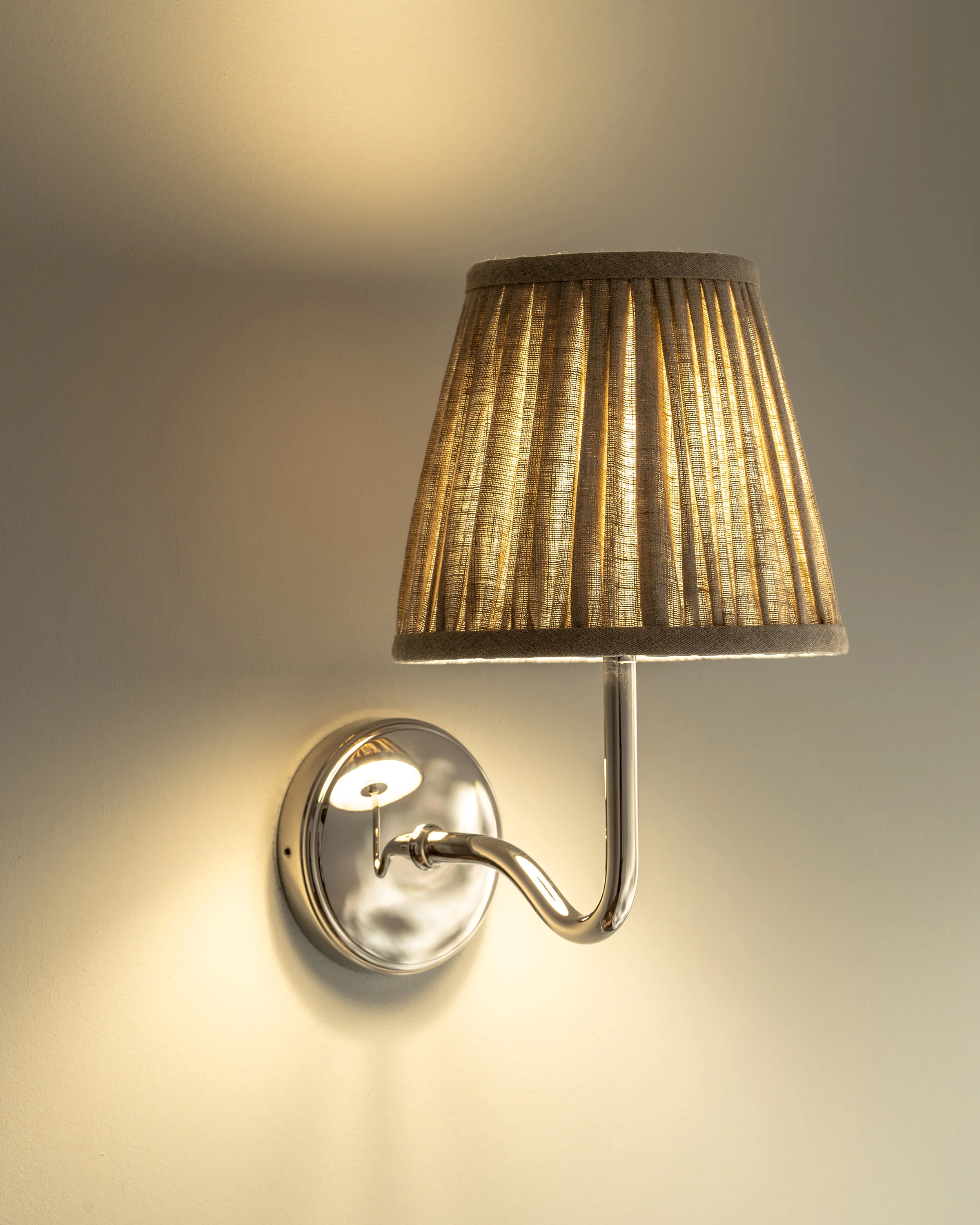 Our medium-sized take on the traditional swan neck wall light is scaled up, but still perfectly proportioned. It’ll have a greater presence in bigger or high-ceilinged rooms.